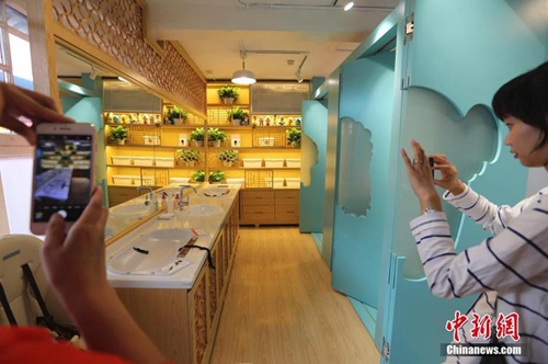 9月19日,为给带婴幼儿参观的观众提供一个洁净、舒适、安全的哺乳、护理与休息场所,故宫博物院首次开设母婴护理室。护理室中设施十分全面,设有3个独立哺乳室、母婴卫生间及一系列护理设施,包括专业带安全扣的婴幼儿护理台、45℃恒温温奶器、冷热水洗手池、婴幼儿湿巾、婴幼儿座椅等,所有材料均采用质优产品,让家长与孩子可以放心使用。中新社记者盛佳鹏 摄