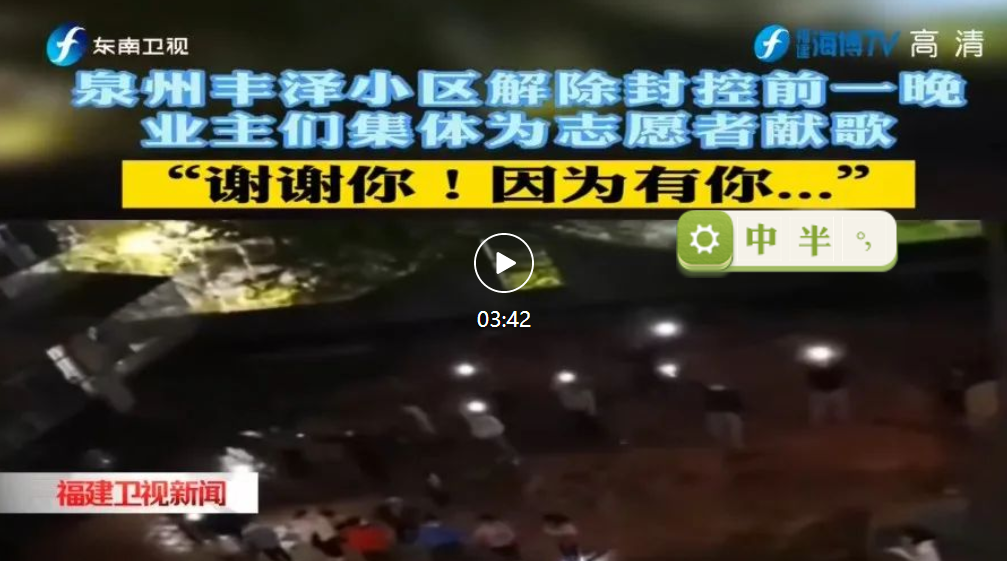 来自泉州团市委的黄华君是首批下沉丰泽新村的干部,这些天里,这支队伍的休息区是丰泽幼儿园。 组织核酸采集、上门送自测盒、清理居民生活垃圾、保持楼栋卫生、运送生活物资,封控的日子里,丰泽小区居民和这些党员干部、志愿者成为了“家人”。 27日晚,得知小区解封后志愿者即将撤离,小区居民们自发在阳台上唱响《听我说谢谢你》,向“大白”“小蓝”们表达感恩与不舍…… 严格落实“解封不解防”要求,根据统筹安排,一小部分下沉干部继续留在丰泽新村,协助社区加强后续健康管理、群众返家返岗保障等工作。一个令人感动的细节是,社区居民中,已有一百六十多人表示要接过“接力棒”,担任志愿者,参与小区的疫情防控,守好自己的“家”。