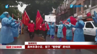 打开关闭了十多天的大门,来自泉州金控集团的抗疫工作志愿者阔步走出丰泽小区,社区工作人员用掌声和歌声欢送“战友”。16天,他们并肩作战,用坚守,换来了解封这一刻。 时钟拨回到3月13日,新冠疫情突袭泉州。当晚9点,丰泽小区成为泉州第一批列入封控管理的小区,实行“区域封闭、足不出户、服务上门”。这个有着4000多名居民的小区,忽然间,按下了“暂停键”。