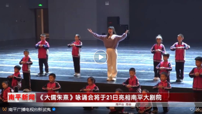 大家现在看到的就是我们即将21号上演的《大儒朱熹》的暖场表演。有小学低、小学高,还有中学,分三个层次为大家来展现我们朱子的经典诗词吟诵。 据了解 《大儒朱熹——走进朱子大型交响咏诵会》 由南平市人民政府主办 中共南平市委宣传部 南平市文化和旅游局承办