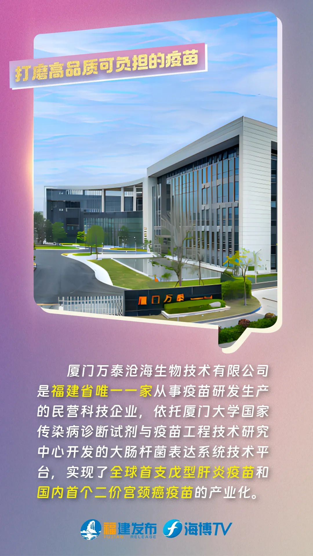 生物医药产业是福建省重点培育的战略性新兴产业。全球纯度最高的硫酸氨基葡萄糖、全球首支“重组戊型肝炎疫苗”、全球第一大辅酶Q10生产商、全球首台基于互联网和物联网技术的人工肾脏替代治疗设备……福建一大批优势生物医药企业不断创造出瞩目成就。 福建“新”力量 来自逐浪战略性新兴产业 奔涌而来的“新质生产力” 新质生产力 其实也是新质“生活力” 助力着我们的生活不断精彩焕新 探索未来的无限可能 2024 让我们一起向“新”而行 |