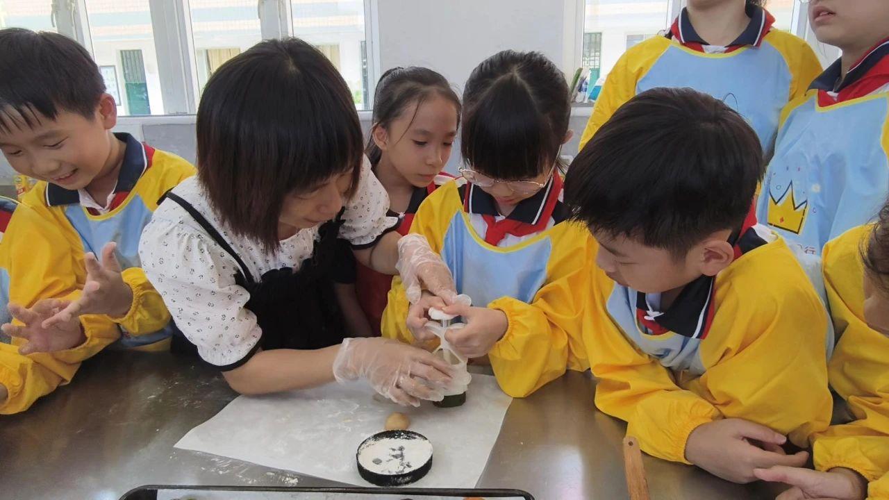 在中秋佳节来临之际,为弘扬中华优秀传统文化,厚植家国情怀,建立文化自信,近日,实小教育集团思贤校区开展“茶香月明 情满中秋”主题活动。 在劳动实践基地,老师们向学生们讲解月饼制作及由来的相关知识,并手把手教授手工制作月饼技巧。随后,在老师指导下,学生们齐动手,包馅、脱模一气呵成,不一会儿,一块块月饼便摆满了桌面。 在思贤馆,国家一级茶艺师吴莹为师生们细致讲解了宋代茶文化发展史及相关茶礼知识,介绍了茶筅等点茶工具的用法和执壶技法,并现场展示点茶的全过程。在氤氲的茶香中,大家认真学习候汤、熁盏、点茶等步骤,每位同学都亲身参与其中,共赴一场宋式风雅之约。通过理论与实践相结合的方式,学生们一同感受宋式点茶的起源、演变、流程等,体验点茶文化魅力。 幽幽茶香浸人心,传统文化久流传。此次活动,学生们在学习、了解点茶和月饼制作中,提升了学生动手能力,激发了学生对传统文化的热爱,培养学生对传承中华优秀传统文化的亲切感、使命感,推进中华优秀传统文化教育扎根课堂、浸润童心。(谢梦婷 颜如玉)