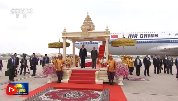 当地时间4月17日上午,国家主席习近平乘专机抵达金边,应柬埔寨国王西哈莫尼邀请,对柬埔寨进行国事访问。 当地时间4月17日上午,国家主席习近平乘专机抵达金边,应柬埔寨国王西哈莫尼邀请,对柬埔寨进行国事访问。