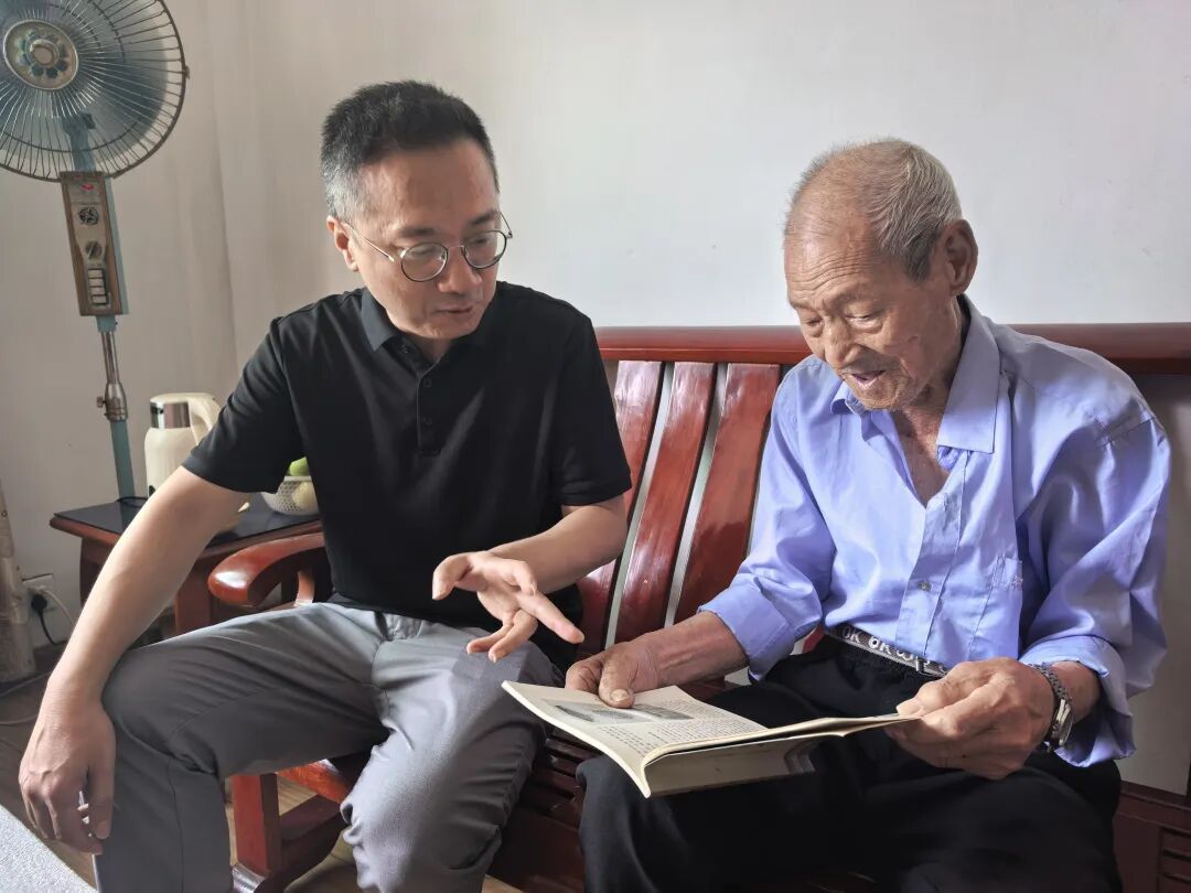 顺昌县退役军人事务局工作人员上门慰问胡绍星 1947年,部队起义,胡绍星迎来新生。两年后,天津解放的炮声中,他因会开各式坦克,被调往北京,成了坦克兵主教官,手把手教战士拆装坦克、讲解构造。他凭着一股韧劲,硬是把这项“必修课”教得扎实,成了部队里特殊的“文化人”。 1950年,抗美援朝的号角吹响,胡绍星编入第四野战军装甲汽车5团,负责往前线运送物资。一次阴雨天,炮弹在车旁炸开,弹片钻进他的腿,鲜血浸透了裤管。他咬着牙踩油门,直到把物资送到阵地,才一头栽倒在雪地里。“他从不提疼,只说‘比起牺牲的弟兄,我这算啥’。”胡天文红着眼眶回忆,父亲腿上的伤疤,至今还像条蜿蜒的河。 1952年回国后,伤愈后的胡绍星拿着二级残疾证,先在浙江军区给首长开车,后来转业到国家建筑工程部。从河南洛阳第一拖拉机制造厂的厂房,到江西新余钢铁厂的高炉,再到福建顺昌的林区,他把战场的拼劲用到了建设上。“工地上别人休息,他还在琢磨机器,说‘国家要强大,就得有好厂子’。”胡天文说,父亲总把这句话挂在嘴边。 林禧每次和同事上门,都会陪老人一起看会儿新闻。“胡老看着日新月异的国家,会握着我的手,说‘能看到现在的中国,值了’。”林禧感慨,这些老兵从不炫耀过往,却用一生践行着“为国奉献”的誓言,“他们的经历,是我们开展国防教育最生动的教材。” 如今,胡绍星的听力越来越差,胡天文凑到他耳边喊“老爸”,他会缓缓转头,咧开嘴笑。他依旧不爱提过去,只是看到电视里阅兵的画面,会悄悄坐直身子,手指在膝盖上轻轻敲击,像在打节拍——那是当年军歌的节奏。