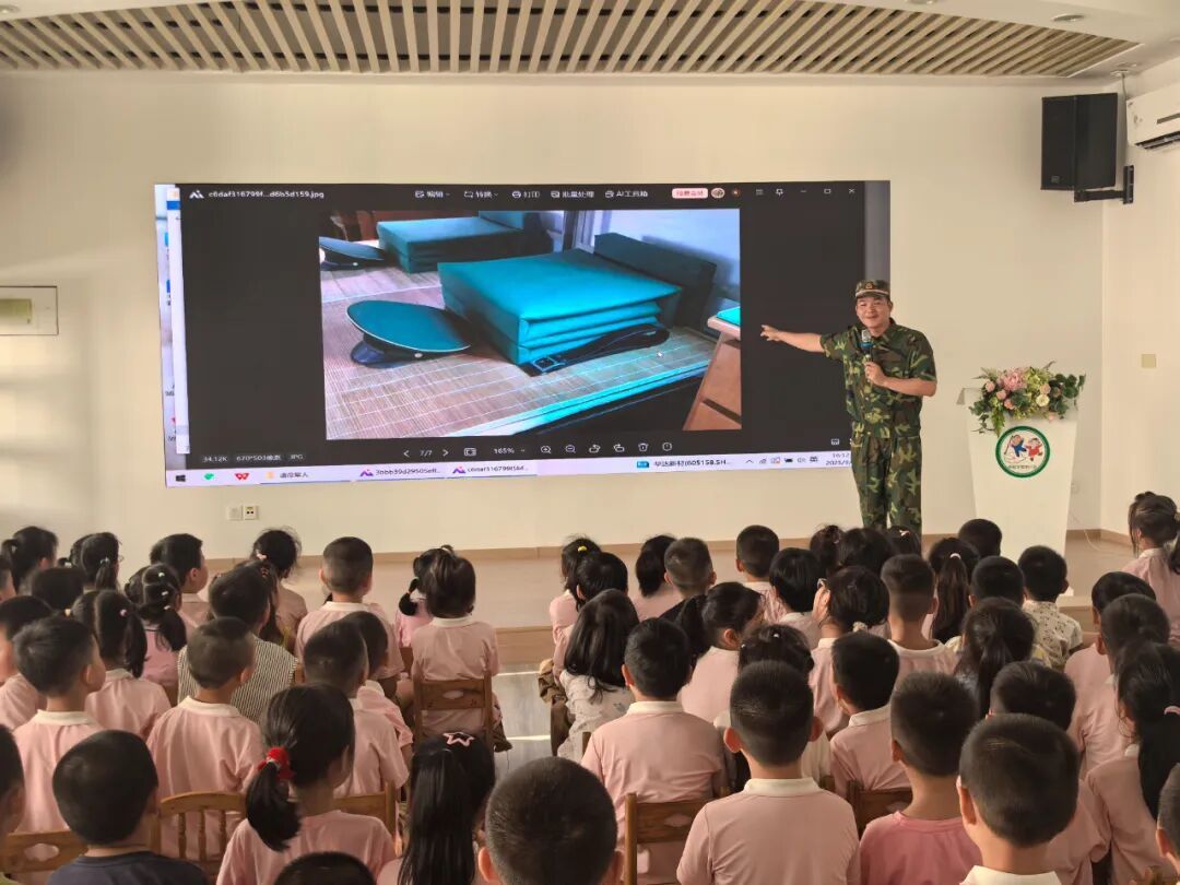 活动还邀请了退役军人来园讲述军旅故事。精彩的讲述深深吸引了孩子们,他们专注倾听,不时发出“哇”的惊叹。随后的“学做小军人”环节中,孩子们练习站军姿、走正步,虽然动作稚嫩,却个个神情认真,努力模仿军人的挺拔姿态。