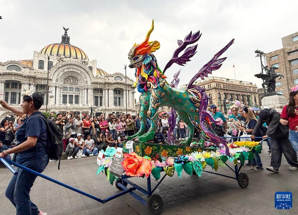 这是10月18日在墨西哥首都墨西哥城拍摄的魔幻动物大游行现场(手机照片)。 当日,为迎接即将到来的亡灵节,墨西哥城举办魔幻动物“Alebrijes”大游行。“Alebrijes”是一种墨西哥传统手工艺品,用鲜艳的颜色和丰富的图案装饰,展现充满想象力的奇幻动物形象。 新华社记者 武巍 摄