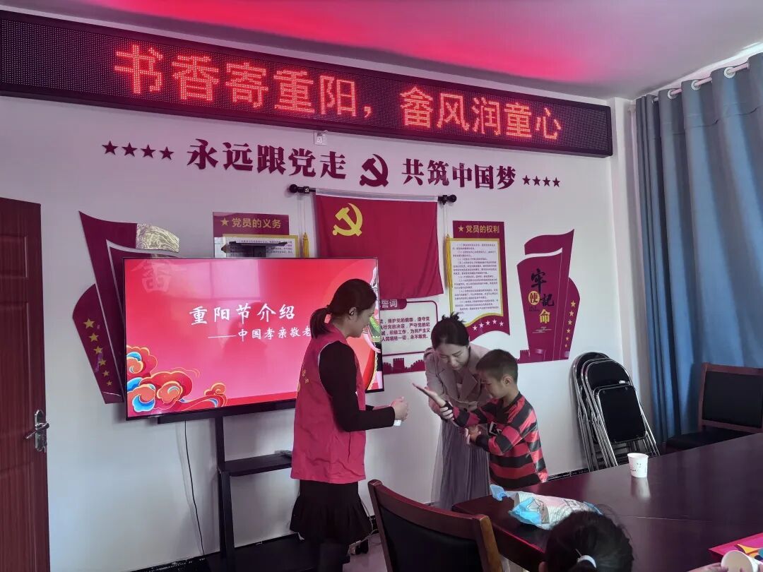 活动现场,工作人员向村内儿童赠送《三字经》《弟子规》等国学经典读物。屈瑶围绕“孝老爱亲”主题,为孩子们带来一堂融合重阳传统、历史故事与畲族文化的特色课程,重点讲解了畲族敬茶礼仪中蕴含的尊老文化,在孩子们心中播下民族团结与孝道传承的种子。