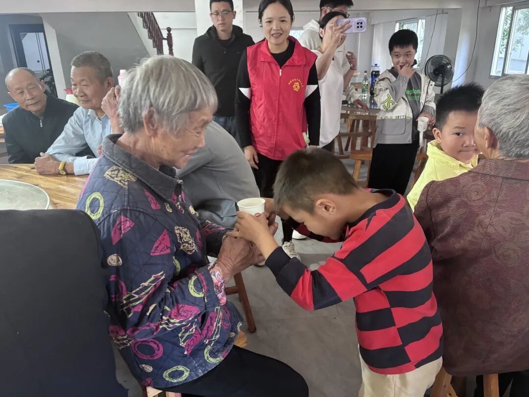 随后,孩子们在文化特派员与志愿者的带领下走进村中长者食堂,用刚学的畲族敬茶礼仪为老人奉上长寿茶。文化特派员团队还与下沙村委会精心准备了健康营养的长寿宴,在保留传统重阳节俗的基础上,注重食材搭配与营养均衡,选用当地当季食材,设计符合老年人口味的菜品,让老人们在品尝美食的同时,感受到节日的温暖与关怀。 “我们以文化特派员机制为纽带,推动国学阅读与畲族礼仪走进乡村课堂,不仅‘送文化’,更要在孩子心中‘种文化’,让优秀传统生根发芽。”屈瑶表示。 村民雷奶奶感动地说:“孩子们学礼仪、奉热茶,我们心里特别暖。这不只是上课,更是把畲家敬老的传统带回来了。”学生家长兰先生也表示:“这样的活动既教孝道、又传畲情,希望常办常新,让文化一代代传下去。”