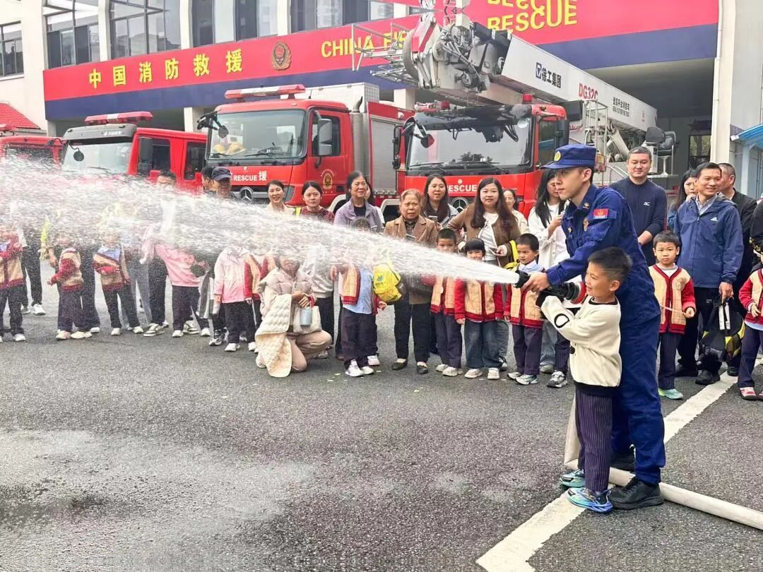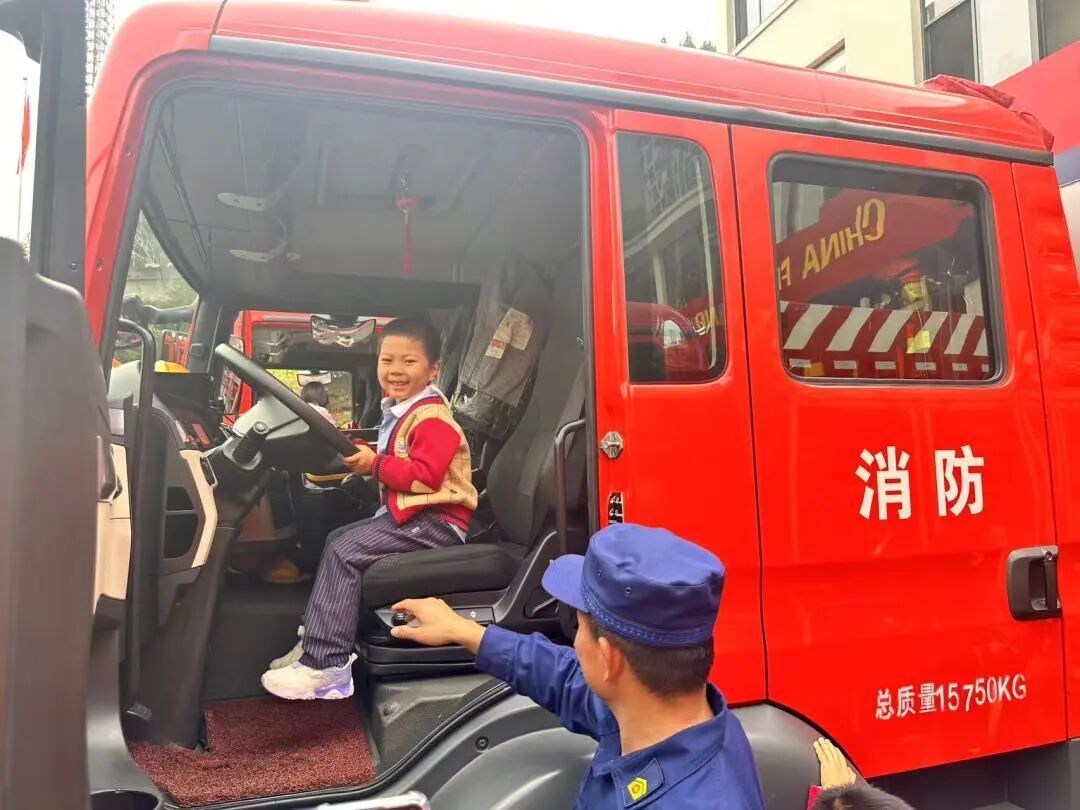 活动现场还模拟演示了水枪和灭火器的灭火场景,生动直观的展示方式让孩子们在“可听、可看、可触”的沉浸式体验中,进一步加深了对消防安全知识的理解。部分小朋友登上消防车亲身感受,过了一把“小小消防员”的瘾。