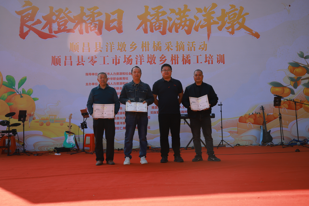 近年来,洋墩乡始终将柑橘产业作为乡村振兴的支柱产业,通过创新“候鸟式务工”模式,构建“培训—输出—保障”一体化体系,建强组织体系促进劳动力有序输转,培育“顺昌柑橘工”劳务品牌,加强技术指导与培训,持续打造“洋墩柑橘”区域公共品牌,并以线上线下多渠道拓宽销售市场,多措并举推动柑橘产业高质量发展。据统计,今年洋墩乡柑橘种植面积达1.42万亩,总产量预计突破2500万斤,产值可达6000万元;开展阶梯式技能培训500余人次,培育专业柑橘工约100余名,有效缓解了产业季节性用工难题。柑橘已成为当地乡亲们名副其实的“致富果”。