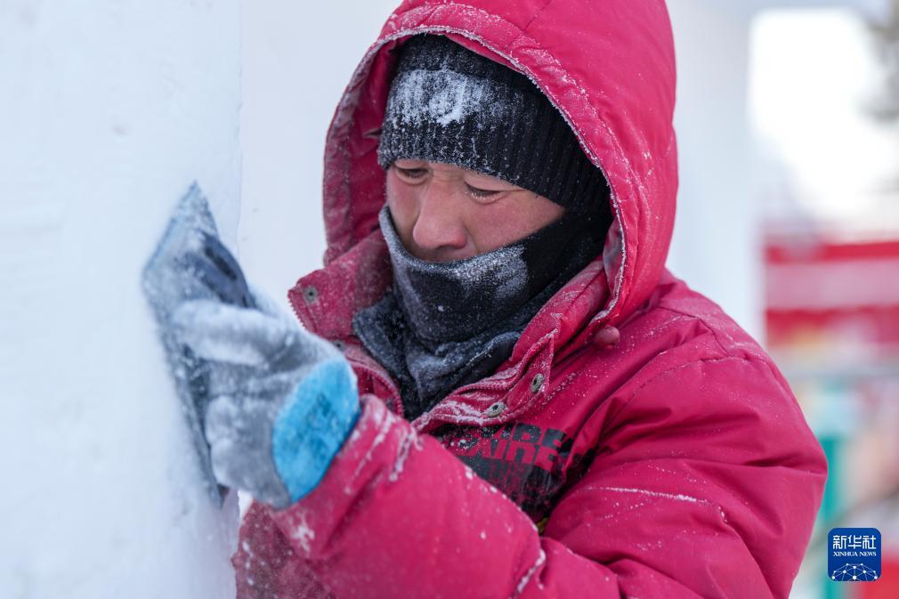 在第38届太阳岛国际雪雕艺术博览会园区,雪雕师对大型雪雕群景观进行创作收尾作业(12月26日摄)。 12月27日,第38届太阳岛国际雪雕艺术博览会试开园。本届雪博会以“冰天雪地 诗情画意”为主题,规划面积达150万平方米,总用雪量12万立方米。从气势恢宏的大型雪雕群到精美逼真的创意雪雕作品,雪博会将为人们呈现一场冰城雪境的艺术盛宴。 新华社记者 王松 摄