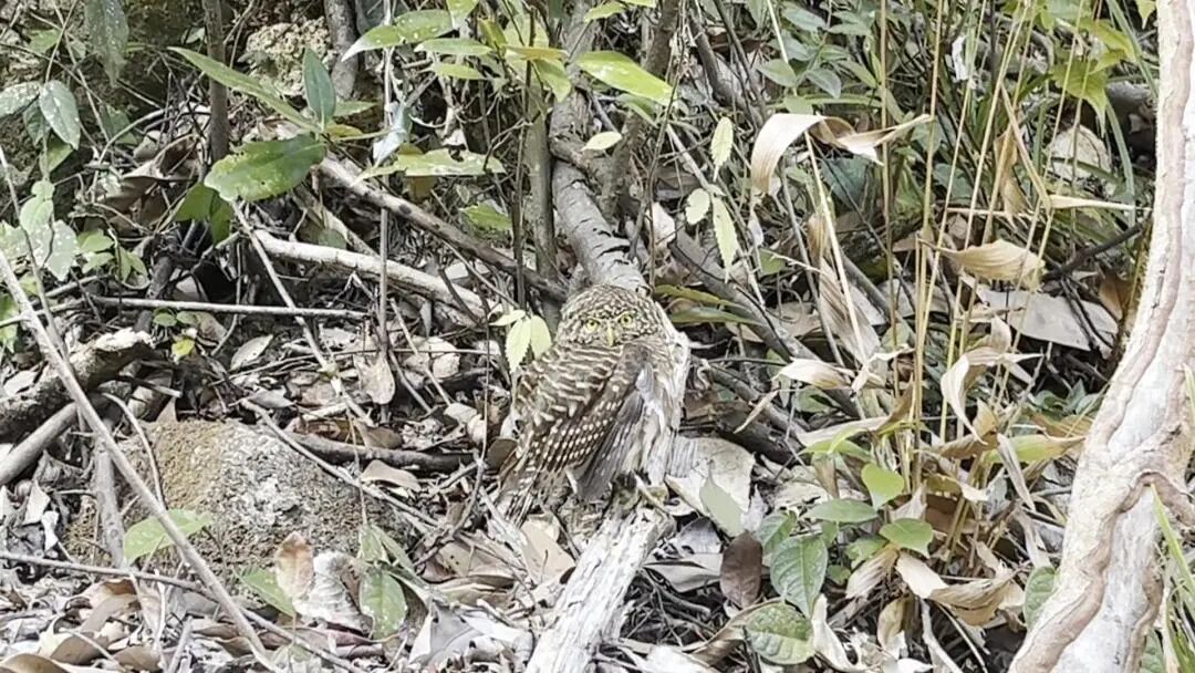 据了解,斑头鸺鹠是鸮形目鸱鸮科的一种小型猫头鹰,也称横纹小鸺、猫王鸟,主要特征是全身布满棕白色细横斑,一双黄色的眼睛十分醒目。其昼行性较为明显,主要以昆虫、小型鸟类和鼠类为食,对维持森林生态平衡具有重要作用。