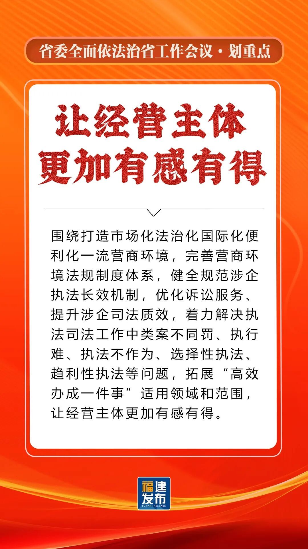 省委书记、省人大常委会主任,省委全面依法治省委员会主任周祖翼出席并讲话,强调“十五五”时期,要全面贯彻习近平法治思想,准确把握新时代新征程全面依法治省工作面临的新形势,牢牢把握法治工作的政治性、人民性、战略性、保障性,坚持法治福建、法治政府、法治社会一体建设,奋勇争先打造法治高地,为推进中国式现代化福建实践提供有力法治保障。