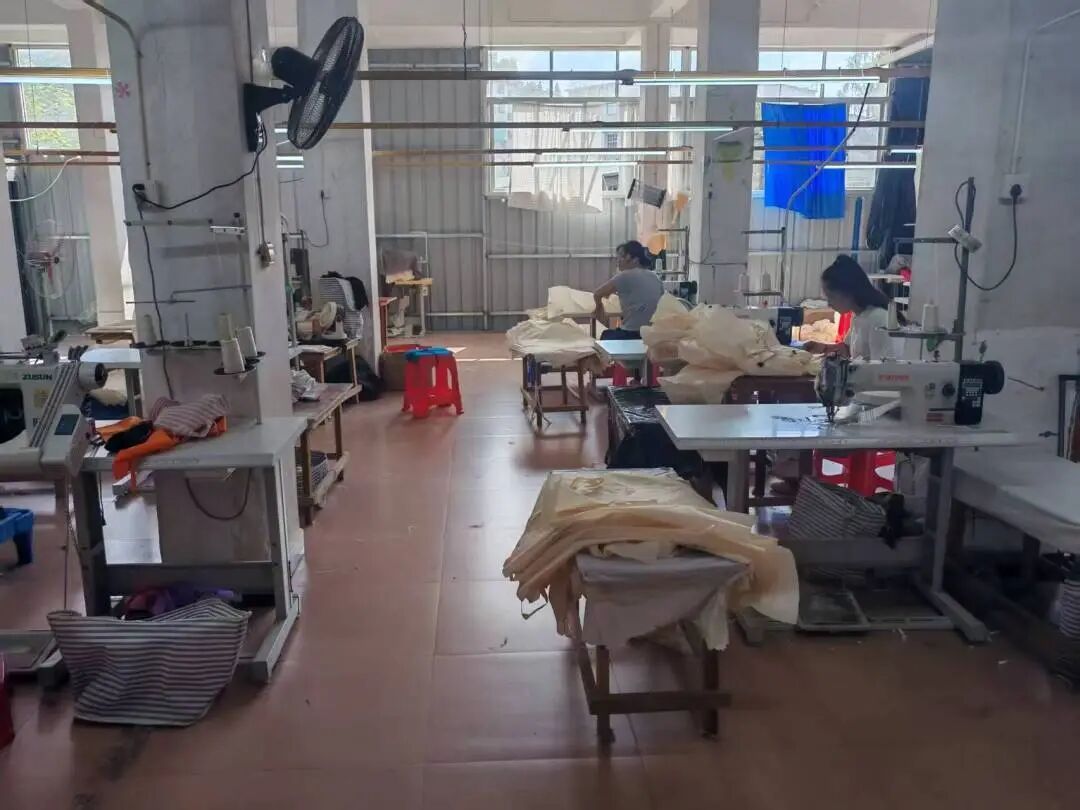 “通过今年党建体检,发现村里存在资产闲置、产业底子弱、村民收入单一等问题。为有效破解这些难题,村里经乡政府统筹协调,积极与乡贤、企业联系,将村内旧厂房、旧仓库等闲置资产改造盘活,通过租赁、承包经营、股份合作等多种方式,让‘沉睡资产’变‘增收活水’。”高阳村党支部书记吴雪珍介绍说,“金顺共富工坊正是在这一背景下诞生的。2024年初,我们经乡政府牵线搭桥,与金顺国际集团(香港)有限公司董事长廖其明商量,在村内办一个代加工点,解决当地村民就业问题。廖其明欣然应允,将高阳中学下面的闲置厂房改造成一次性桌布代加工点。”如今,工坊内吸收120多名附近妇女就业,解决了当地村民不少的生活难题。