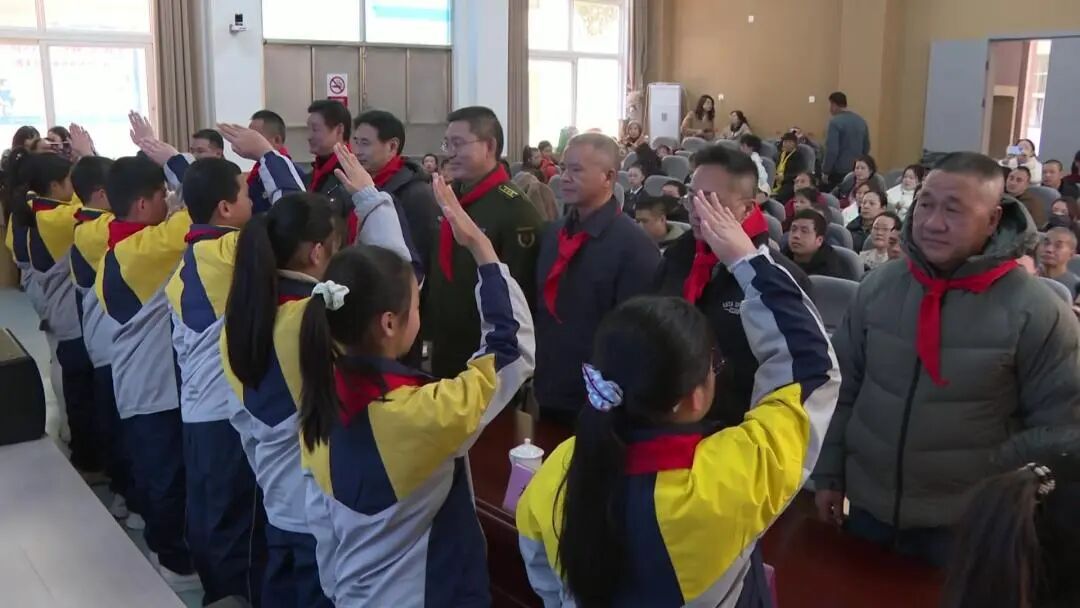 现场氛围庄重而温馨。县人武部政委徐焕,县退役军人事务局、教育局等相关单位领导及嘉宾应邀出席。少先队员迈着整齐的步伐,满怀敬意地为到场嘉宾佩戴红领巾。鲜艳的红领巾在胸前飘扬,成为现场一道动人的风景,也承载着孩子们对军人及军属的深深敬意。