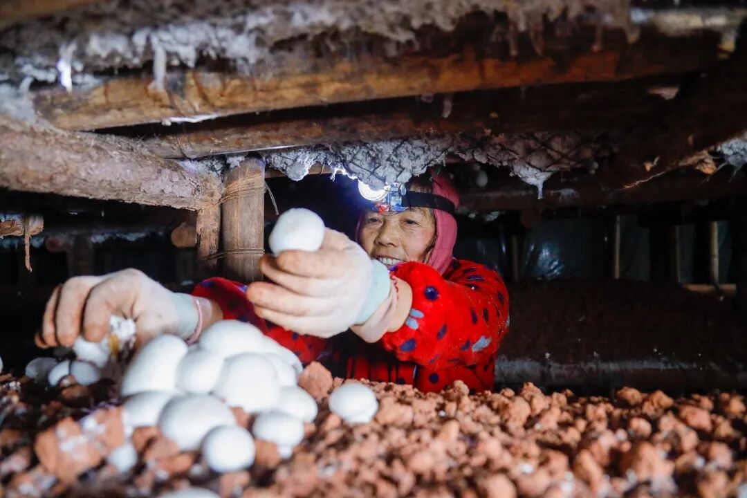 1月20日,郑坊镇兴源村食用菌种植基地里一派丰收忙碌景象,鲜嫩饱满的双孢蘑菇进入采摘季,农户们穿梭在大棚中采收、分拣,小小的蘑菇正成为带动村民增收、激活乡村活力的“致富密码”。