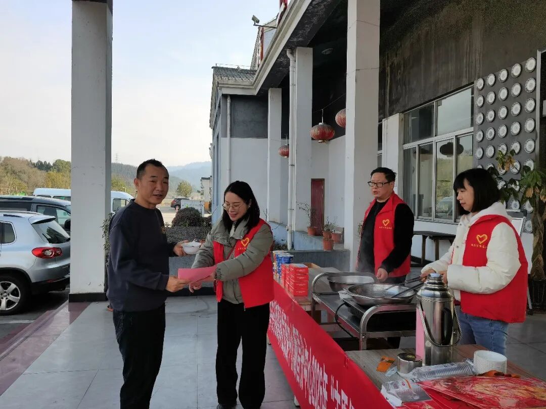上午9时,埔上服务区“司机之家”内已是暖意融融,一派热闹景象。志愿者们分工协作,贴春联、贴窗花,紧锣密鼓地布置着温馨的节日氛围。在服务区门口,志愿者们架起小锅,为长途奔波的司机朋友们煮上一碗碗热气腾腾的汤圆和姜茶。