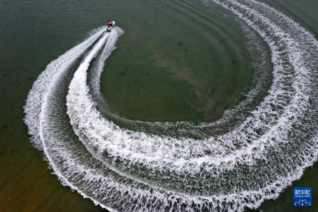 2月5日,游客乘坐摩托艇在广西北海市海上游玩(无人机照片)。 立春时节,广西北海市气温逐渐回暖,不少游客乘坐摩托艇等工具在海上冲浪游玩。 新华社记者 陆波岸 摄