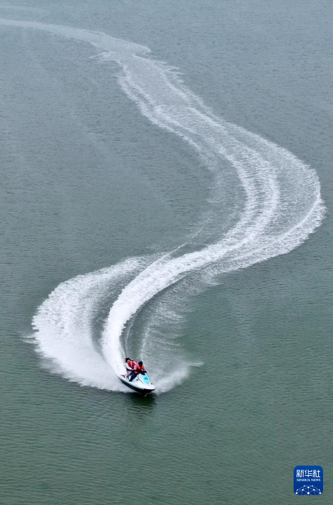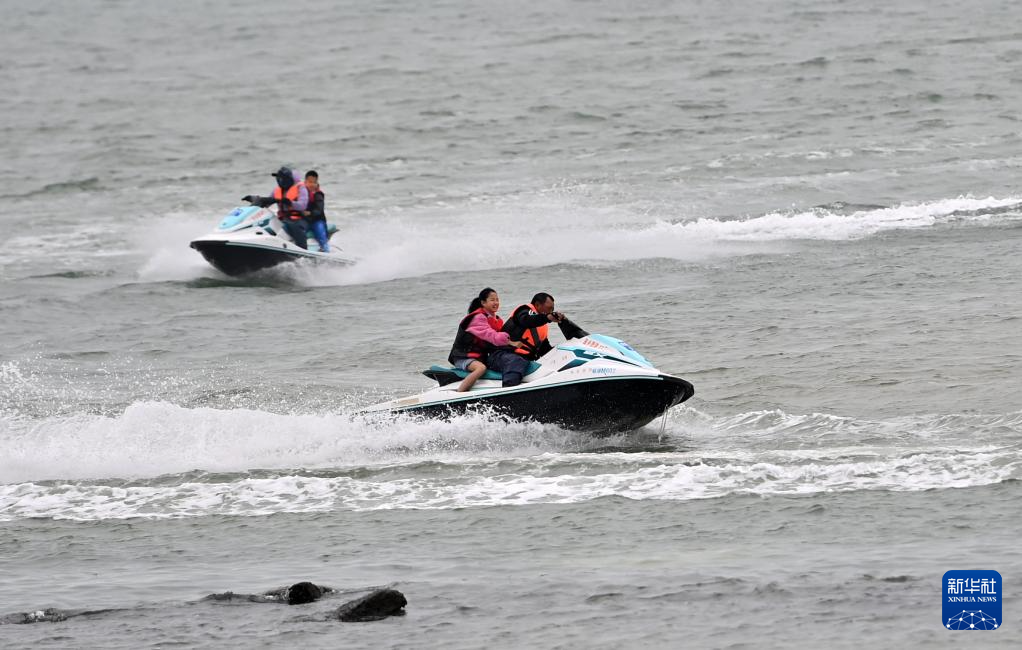 2月5日,游客乘坐摩托艇在广西北海市海上游玩。 立春时节,广西北海市气温逐渐回暖,不少游客乘坐摩托艇等工具在海上冲浪游玩。 新华社记者 陆波岸 摄
