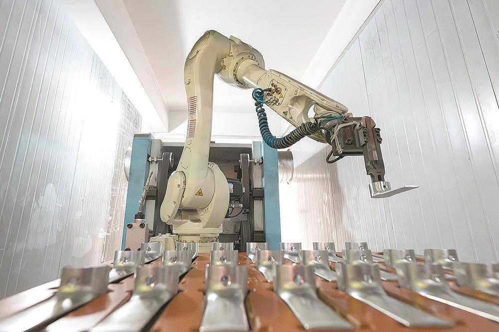 2月22日,在省级重点项目五矿智慧工坊·中国(南安)高端阀门智造产业园内,一家企业的自动化生产车间通过机器人实现产品无人化加工,新春开工精准对接海外订单。福建日报记者 王毅 通讯员 林婧 摄