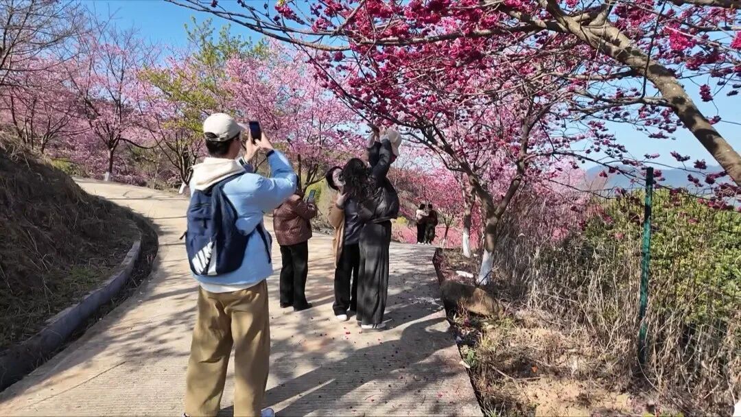 走进大干镇上湖村,道路两旁与山坡上的樱花树缀满繁花,粉的、白的花瓣层层叠叠,灿若云霞。游客们沿着村道漫步,驻足拍照,在樱花树下休闲游玩,享受假期的轻松惬意。打卡之余,不少游客还走进古村深处,感受上湖村深厚的文化底蕴。 近年来,上湖村依托良好生态环境与自然景观,成为群众就近休闲游玩的好去处。春节假期晴好天气,进一步带动赏花休闲游,让乡村旅游更具人气。