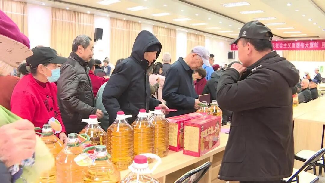 活动现场气氛热烈,老同志们握手寒暄,欢声笑语不断。近1300名老同志凭退休证参与活动,在欢乐祥和的氛围中感受节日温暖。活动准备了价值近5万元的慰问品,从花生油到抽纸,既实惠又贴心。