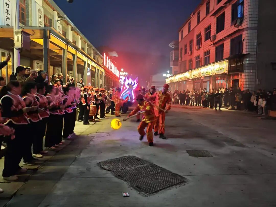 当晚,谟武村还举行“桃枝喝彩”传统民俗活动。