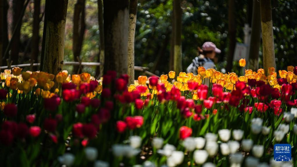 游客在龙里县龙架山国家森林公园内赏花游玩(3月12日摄)。 近日,贵州省黔南布依族苗族自治州龙里县龙架山国家森林公园内的数万株郁金香竞相绽放,吸引各地游客前来游玩赏景。 近年来,龙里县依托良好的生态环境和区位优势,大力发展“美丽经济”,通过种植四季花海,完善旅游基础设施,推动单一观光向综合消费升级,为“赏花”经济注入强劲活力。 新华社记者 陶亮 摄