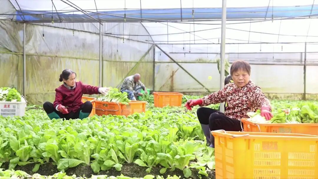 3月16日,走进来布明强家庭农场的种植基地,只见村民们正忙着将新鲜的快白菜采摘、装筐、装车,一片繁忙的景象。过去这里还是无人问津的25亩山垅田,如今已搭建成高标准蔬菜大棚;而周边的140亩农田也经过流转,被改造成了稳产高效的露天蔬菜基地。