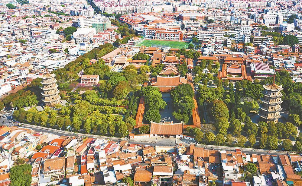 俯瞰泉州。 (资料图片) 清晨的泉州西街,晨曦踮着脚尖掠过古厝燕尾脊的翘角,红砖缝间的青苔,是泉州建筑的历史印记。暮色下的中山南路承载着千年商脉,外立面以红砖打底,红砖雕刻、堆塑与剪瓷相映成趣,一砖一饰都在诉说着闽南骑楼的鲜活故事。 红砖建筑风格在闽南遍地开花,“囍”字红砖装饰新婚家庭窗户,瑞兽传递祈福寓意……那些精雕细琢的装饰纹样里,藏着说不尽的文化密码,更寄托着闽南人对美好生活的朴素期盼——既有建筑风骨的厚重,更有烟火人间的温情。解锁红砖厝,感受那些刻在砖上的泉州智慧,品味闽南生活的小确幸。 红砖为骨 藏着闽南取材智慧 当年要说闽南建筑圈的“顶流”,泉州红砖古厝便是其中的代表,时至今日也是如此。可别以为这只是单纯的“颜值控”,这红砖骨子里的智慧,全藏在“取材”二字里。闽南多丘陵,“靠山吃山”发挥了作用,黏土里富含三氧化二铁,烧成红砖却成了温润厚重的“烟炙红”。闽南人顺势而为,把这天然的“朱红”搬上墙面,既省了染料钱,又造就了独一份的“闽南红”。 红砖,是闽南建筑的“底色”,更是适配一方水土的生存哲学。明代万历年间《泉州府志》记载“其土赤埴,陶瓦器坚致耐久”。闽南特有的红壤烧制出的红砖,不仅抗侵蚀、保温隔音,孔隙结构还能调节室内湿度,完美适配闽南夏季湿热、雨季漫长的气候特征,这是闽人就地取材、顺应自然的生动体现。 “红砖不会说话,闽南人却用自己的巧手让其诉说了闽南地区的历史文化,闽南红砖就是本土风俗最好的见证者之一。”伍健东是闽南砖雕继承人,他如是说。泉州的红砖一块一块垒起了一堵堵墙,建造了闽南人的家园。闽南古厝用红砖作骨,以各式花堵、纹饰构筑起独特的信仰与期盼,墙与饰相融,让美好寓意藏于方寸,尽显雅致底蕴,成为闽南人写给大地的“情书”。 砖上生花 刻着吉祥的生活祈愿 如果说红砖是建筑的骨,那么红砖雕刻便是骨上的魂,一雕一刻间,皆是闽南人对美好生活的极致追求。泉州市古建筑有限公司的蒋钦全深耕闽南传统建筑界50余载,作为2025年度“全国文物大工匠”福建省唯一入选者,他眼中的红砖雕刻,是“以物载情”的吉祥暗号,更是凝聚华侨乡愁、增强文化认同的桥梁。 在他眼里,红砖雕刻和石雕、木雕艺术巧妙叠加,龙凤、麒麟等瑞兽直接嵌入墙面,线条顺滑灵动,构图精巧耐看,尽显泉州古建筑“巧、美、秀、雅”的独特风格。走进南安蔡氏古民居,篆体“鹤算龟龄”“凤毛麟趾”嵌于红砖墙间,尽显大户人家的雅致底蕴;大门上的红砖雕更是花样繁多,“喜上眉梢”“福禄寿”“花开富贵”“五福临门”,个个寓意吉祥又讨喜,能工巧匠的过人智慧与奇思妙想,都在这砖雕里展现得淋漓尽致。 再来到晋江五店市,126亩古厝群的红砖墙在阳光下泛着温润的光泽,胭脂红锚住了时光,让红砖的历史文脉变得具象。 红砖雕刻还融入了生活百态与自然意象。中山南路修缮后的古厝门窗、门堵上,红砖雕刻错落分布,吉祥鸟姿态栩栩如生,与剪瓷工艺相映成趣,共同诠释“松鹤延年”“四季平安”的美好寓意。这些雕刻不仅是装饰,更是闽南人将祝福刻进建筑、融入生活的生动表达,让每一面红砖墙都成为传递吉祥的“信物”。 红砖这材质,它天生“硬核”又自带“高颜值”,简直就是给堆塑、剪瓷这些“手艺活”量身定制的舞台。堆塑工艺中,遵循“水泥砂浆打底,表面修饰”流程,配比按泉州气候反复调试,打底厚度精准到毫米,表面修饰在泥浆半干时一气呵成。再看剪瓷工艺,秘诀就是在水泥里掺传统的蚵壳灰,这招既让剪瓷稳稳“扒”住墙面,又呼应了泉州古城的“蚵壳基因”。这些工艺均以红砖特性与环境需求为出发点,实现与建筑的深度适配。 传承美好 红砖藏着的文化密码 红砖上的纹样,是闽南文化的“活密码”,一纹一意间,藏着说不尽的民俗风情与精神寄托。 在泉州红砖厝中,红砖的纹样堪称“吉祥百科”:每一笔都将对平安、富足的期盼融入每一块砖的拼接之中。民间红砖厝外墙与装饰纹中,“福”“寿”“囍”等文字纹样随处可见,新婚家庭窗户上的“囍”字红砖,更是将喜庆氛围拉满,既显精致又藏祝福,让建筑成为传递情感的载体。 除了文字与传统吉祥纹,堆塑、剪瓷等工艺也为红砖纹样增添了别样韵味。中山南路胭脂巷口的剪瓷花鸟“迎客纹”,牡丹以黄釉瓷片堆塑、剪瓷呈现,与红砖墙面浑然一体;中山南路309—313号的梅兰竹菊剪瓷依次铺展,将“四君子”的高洁品格融入建筑装饰,让纹样在实用与美观中实现完美平衡。 如今,闽南红砖文化更是从传统建筑墙上走到了现代人们家中。近年来,泉州持续推动红砖文化的传承与活化,研发红砖文创品,开展红砖研学,让原本只能远观的古厝红砖变成了能带回家近赏的“纪念品”、能用的“生活品”、能玩的“文创品”。能工巧匠们发扬砖雕艺术,使得建筑艺术完成了向生活艺术的延伸。泉州砖雕艺人吴育琳的红砖雕刻涵盖泉州十景与文化意象,并开发茶盘、杯托、红砖“囍”等生活化产品,助力红砖文创品出圈。晋江梧林传统村落开设红砖研学课,孩子们在实践中感受文化魅力,了解泉州建筑里的生活哲学与文化密码,续作新时代的红砖诗画…… 从风靡闽南、东南亚的殿堂级建筑文化,到深入千家万户的时尚型生活美学,今天的闽南红砖正以其