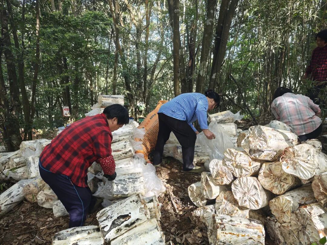 12日清晨,朝露浸润山间,走进顺昌县郑坊镇上坊村荒野灵芝基地,林下一根根粗壮白胖的灵芝椴木菌棒整齐码列,三五成组的种植工人分散在基地,手脚麻利地忙着挖坑、搬运、覆土……泥土气息混着菌菇香扑面而来。