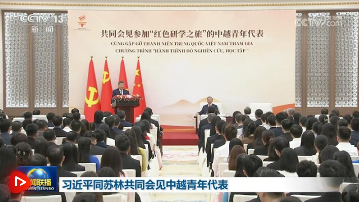 (点击查看视频) 4月15日上午,中共中央总书记、国家主席习近平在人民大会堂同来华进行国事访问的越共中央总书记、国家主席苏林共同会见参加“红色研学之旅”的中越青年代表。 习近平发表讲话,表示去年我和苏林总书记一道启动“红色研学之旅”项目,一年来,两国青年共同探寻中越友好的红色基因,感受中国式现代化的万千气象,在中国各地留下许多互学互鉴、相知相亲的生动故事。不久前,我收到越南河内国家大学外语附中等学校的同学们用中文写来的信,分享了参加“红色研学之旅”的深刻感悟,立志做中越友谊的传承者和传播者,我感到很欣慰。 习近平强调,青年是推动社会发展进步的有生力量,也是中越两党两国事业薪火相传的接棒人。我对大家提出三点希望:一是希望你们守望相助,让中越“同志加兄弟”的深厚情谊焕发青春光彩;二是希望你们挺膺担当,用青春的活力和创造力激荡起创新、开放、合作、共赢的澎湃春潮;三是希望你们胸怀天下,争做构建人类命运共同体的先锋队,为人类进步事业贡献青春力量。 苏林表示,“红色研学之旅”启动一年来,上千名越南青年沿着老一辈领导人足迹参访在中国的红色遗址,体悟两国的革命传统和深厚友谊。青年是越中两党两国关系的重要桥梁,希望两国青年进一步坚定理想信念,提高政治本领,掌握科学知识,深化对越中关系的认识,为各自国家发展和两国友好发挥重要作用。 参加“红色研学之旅”活动的越方200多名青年代表和中方100多名青年代表出席此次活动。两国青年对双方领导人发表的重要讲话报以热烈掌声。 “红色研学之旅”活动由习近平总书记、国家主席在2025年4月访问越南期间同苏林共同宣布,旨在鼓励两国青年沿着两国老一辈领导人的革命足迹,探寻中越友好的红色基因,为两国社会主义事业和构建具有战略意义的中越命运共同体凝聚青春力量。 蔡奇、王毅、尹力、王小洪等参加。 |