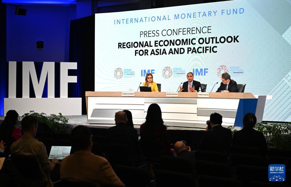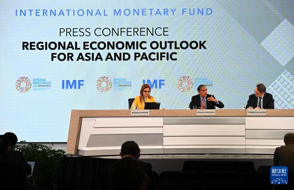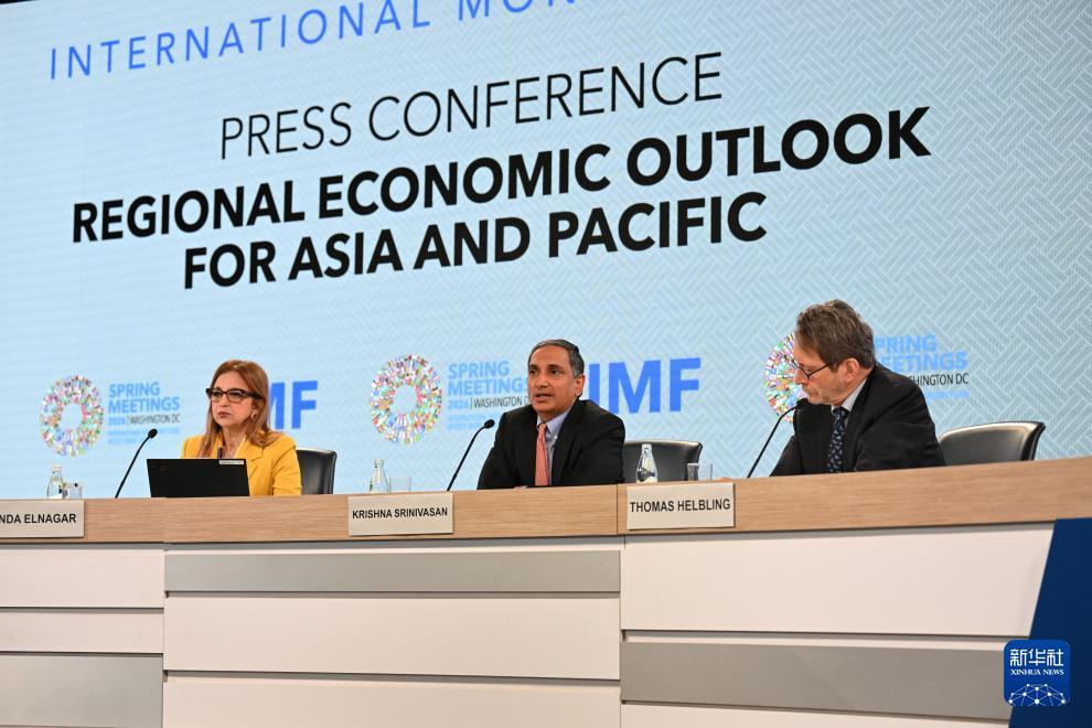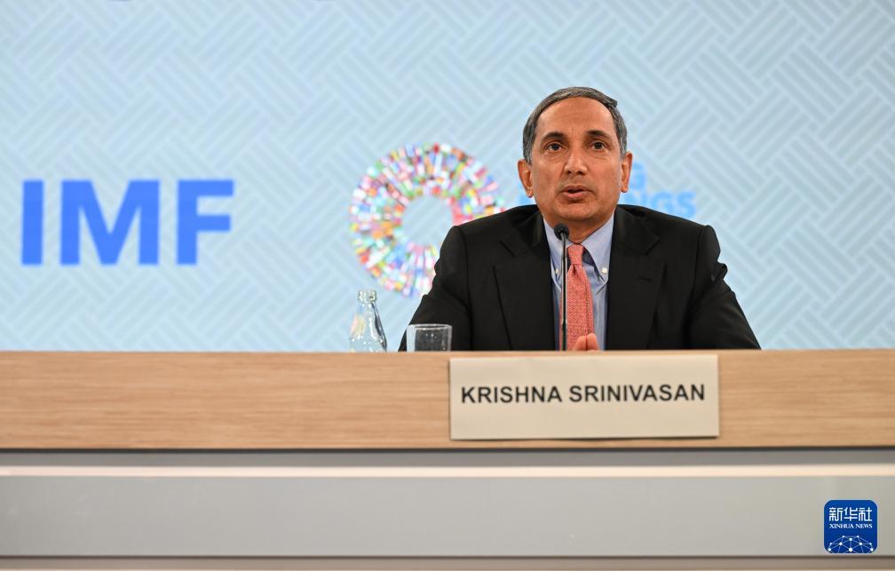 4月16日,在美国华盛顿,国际货币基金组织(IMF)亚太部主任斯里尼瓦桑(中)在新闻发布会上讲话。 国际货币基金组织(IMF)亚太部主任克里希纳·斯里尼瓦桑16日表示,尽管亚洲经济在新年伊始保持韧性,但鉴于该地区对化石燃料的高度依赖以及对冲突地区大宗商品的依赖,新一轮能源冲击将对亚洲产生负面影响。 新华社记者 李睿 摄