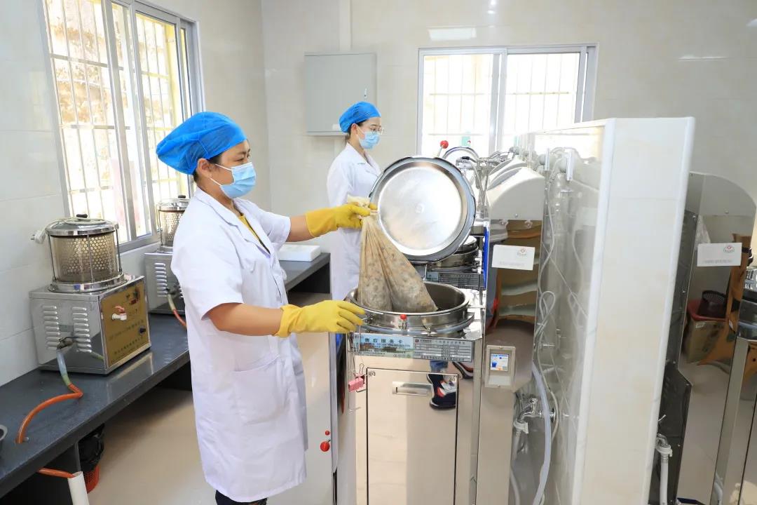 为提升党史学习教育成效,切实为群众解难题、办实事,缓解门诊及住院患者及部分群众中草药煎用难、服用难的问题,近日,县总医院投入50余万元建成中药煎药房,购进目前全市功能最先进的全自动智能中草药煎熬机、液体分装机,专门为群众做好煎熬中药服务。 据悉,县总医院自动煎药机采用理化性质稳定的不锈钢内胆,能防止中药有效成分逸出,密封的煎煮环境使含挥发性的中药成分不易挥发,使中药有效成分大大提高。由于压力的存在,中药材中有效成分更易煎出,动物药的蛋白更易水解,而一些质地坚硬的矿物、贝壳类的药物通过加压、高温使其有效成分的煎出率提高。中药煎药机在煎药时温度可达110度以上,甚至更高,中药有效成分的溶出率得到很大提高,且煎药时环境是密封的,药物和空气隔绝,能防止中药的一些成分在空气中被氧化失效,借此提高有效成分的含量。同时,煎煮过程的高温高压充分杀死了细菌和芽孢,煎煮过程中和包装过程为全封闭过程,减少了污染,使汤剂更加安全、卫生、方便,分包机也可灵活控制单次分包计量,以减少药物浪费。 目前,县总医院正努力打造以“智慧中药房”建设为着力点,积极探索“方便看中医、放心用中药、群众得实惠”的新路径,让患者轻松完成诊疗、取药等传统繁杂的就诊取药流程,为群众提供更加安全便捷的健康服务体验。 |