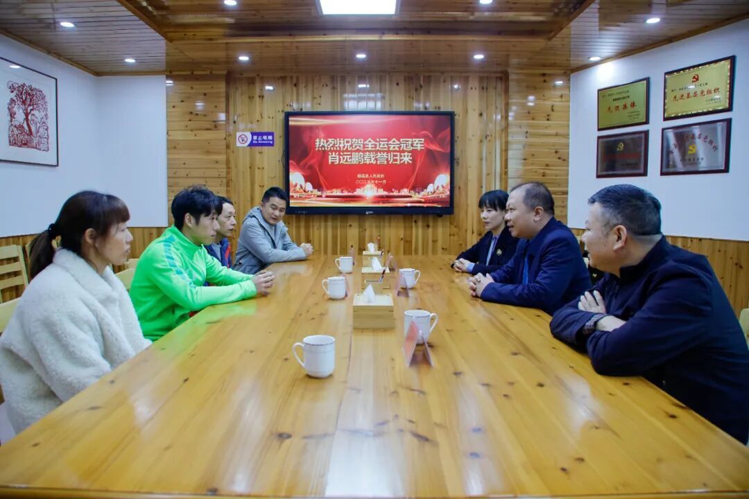 仪式现场,谷国海代表县委、县政府对肖远鹏取得的优异成绩表示热烈祝贺。他表示,肖远鹏在全运赛场上与队友默契配合、奋勇争先,以顽强拼搏的体育精神摘得桂冠,为我省赢得荣誉,也让顺昌的名字闪耀赛场,为顺昌体育事业发展注入强大动力。 在与肖远鹏及其父母的交谈中,谷国海仔细询问其训练生活情况:“你们职业运动员长期集中刻苦训练,这次回来一定要好好休整,感受一下家乡的变化。”肖远鹏坦言:“训练确实艰苦,但一想到咱们项目现在世界排名第二、亚洲第一,还有望冲进世界级赛事就浑身是劲。”他还提到,4×100米混合接力赛作为新兴项目,对团队的默契要求高,从起跑反应、中途加速衔接,到交接棒的精准度,每一个环节都容不得丝毫差错。此次夺冠正是团队努力打磨“零缝隙”配合的成果,同时,也成为该项目在全运历史上的首个冠军。目前,该项目已列入田径世锦赛赛事项目中,未来职业化前景广阔。 谷国海表示,顺昌历来重视体育发展,有着深厚的体育底蕴,排球等运动在城乡普及度高,曾涌现出侯玉珠、张国政等优秀运动员,体育精神早已融入城市血脉。县委、县政府将继续大力发展体育事业,鼓励优秀运动员返乡交流,为家乡青少年传递体育精神与奋斗经验,尤其期待肖远鹏能多与家乡青少年互动,发挥榜样示范作用。同时,县委、县政府也会为运动员及其家庭提供关怀与帮助,让在外拼搏的体育健儿无后顾之忧。
